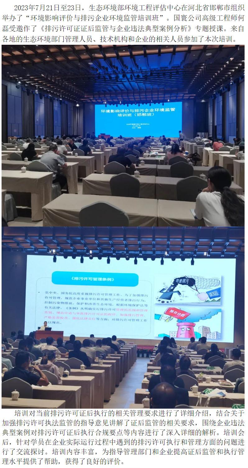 國寰公司受邀為河北省2023年環評審批與排污許可培訓班授課